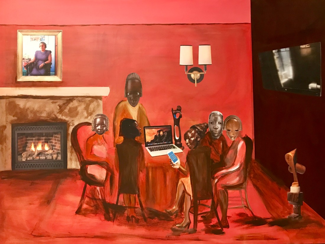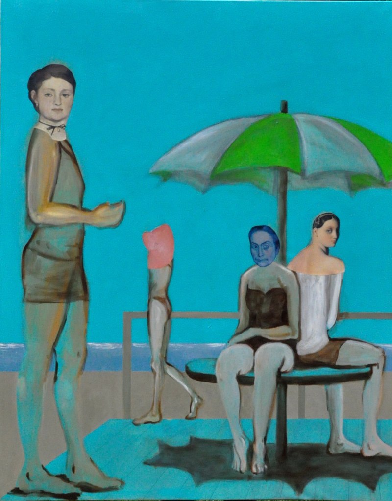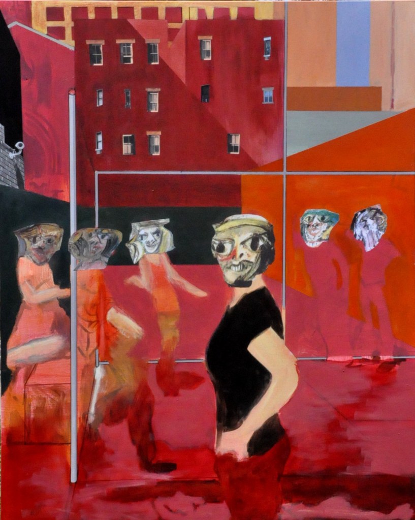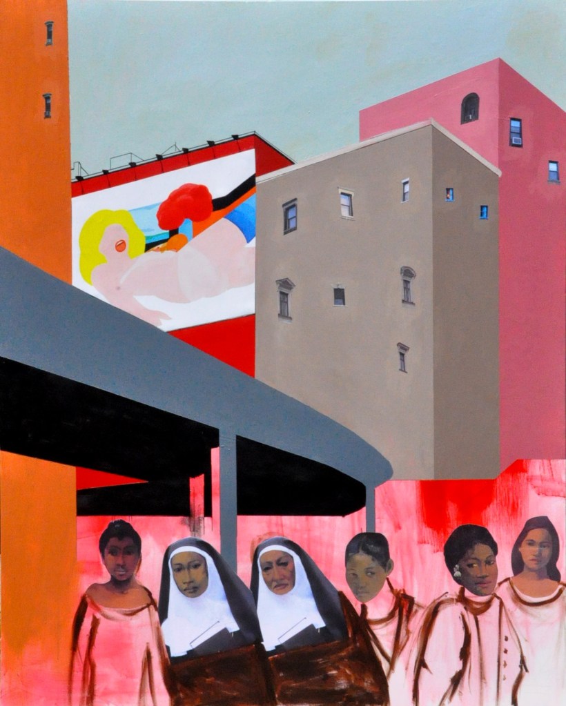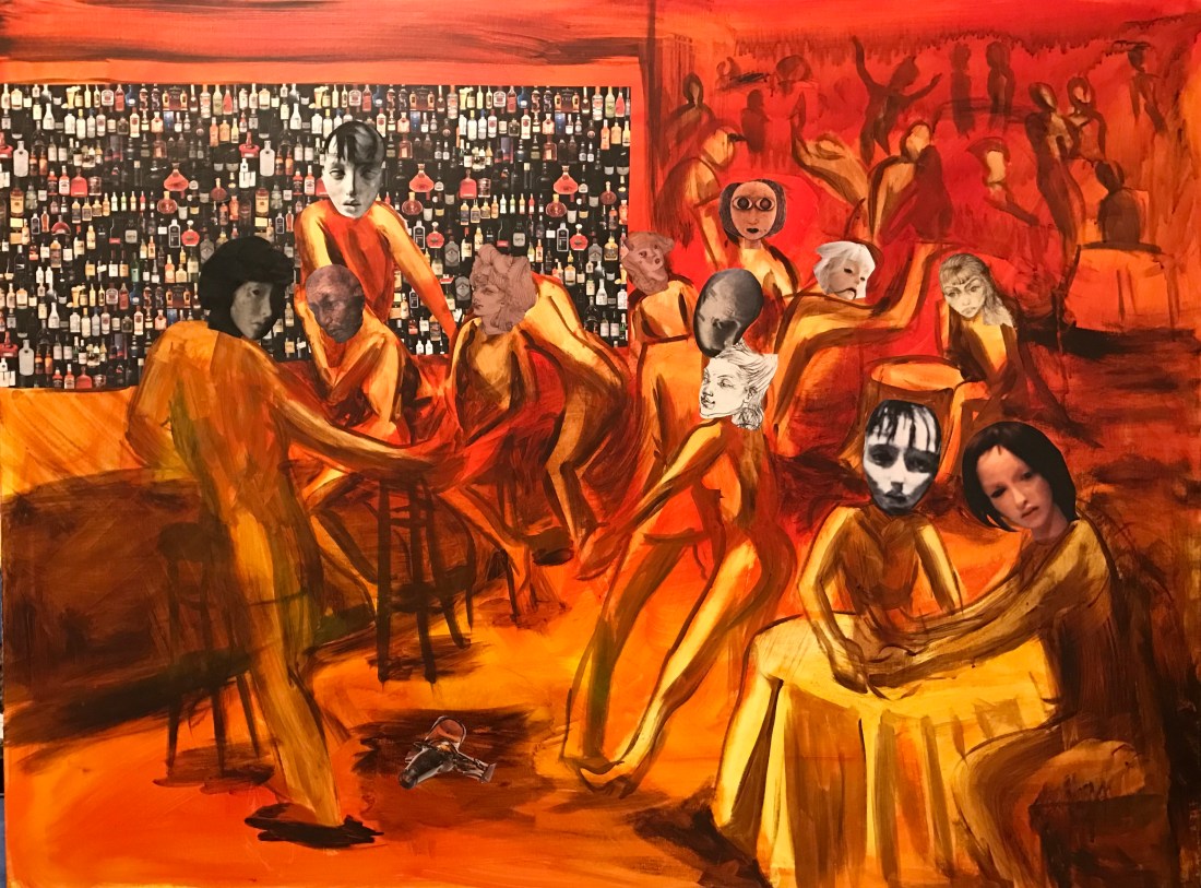 Desmoiselles, acrylic and collage on canvas, 48 x 60 in., Painted in 2015