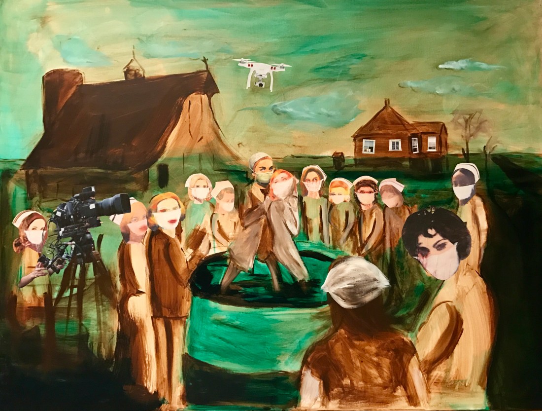 We’re not in Kansas Anymore, acrylic and collage on canvas, 36 x 48 in., Painted in 2017