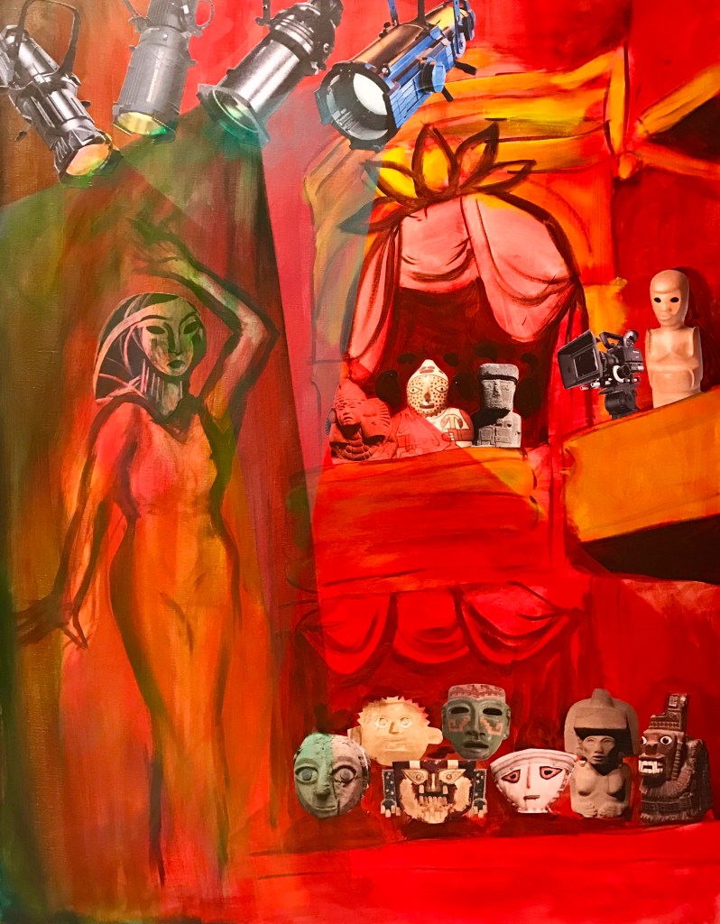 All the World’s a Stage, acrylic and collage on canvas, 36 x 48 in., Painted in 2017