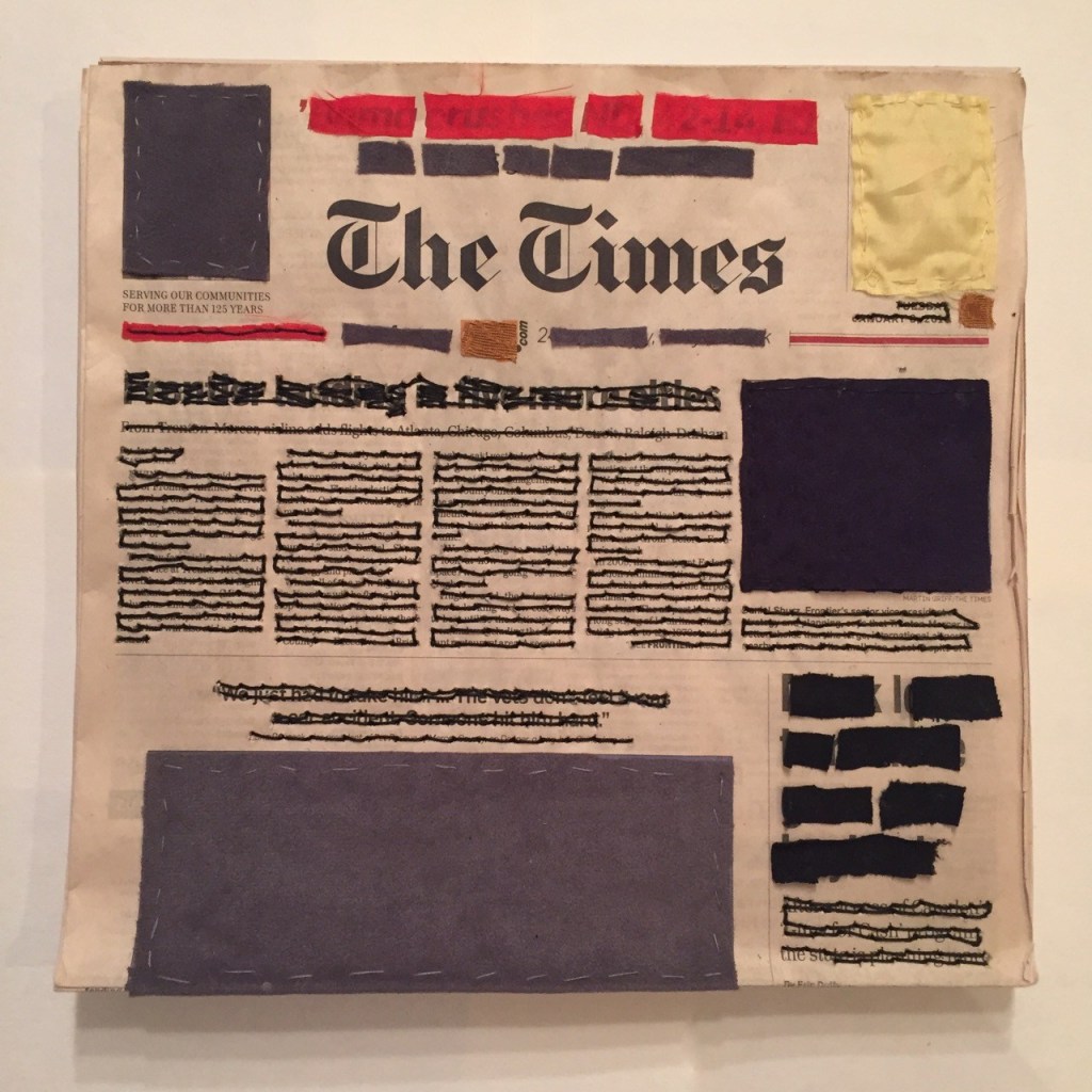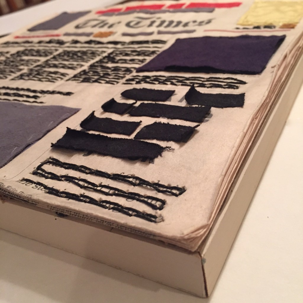The Times, newspaper with embroidered stitching and felt, Executed in 2013